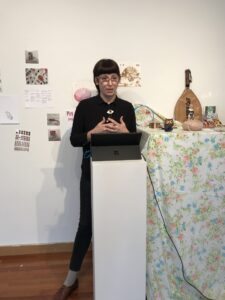 Redfield-Darrah presented a collection of small paintings, drawings, journal entries, text, textile, and photographs created during her residency. This project is a starting point to deepen our understanding of such questions as “Why do we collect the things we do?” and “Why do we value what we value?”