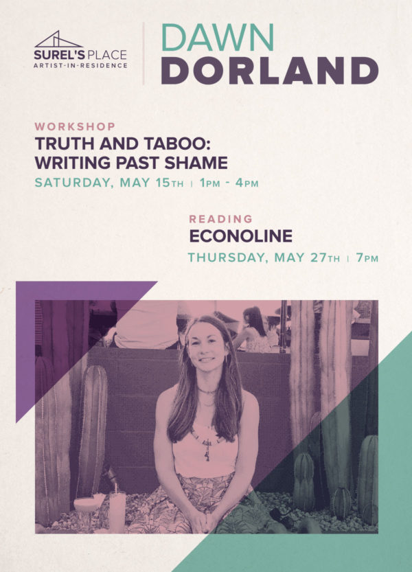 Constituting a brief lecture, reading, discussion, and guided writing, “Truth and Taboo” is appropriate for fiction or nonfiction writers. Writer Dawn Dorland handles sensitive material in a spirit of openness and non judgment, drawing on her sensibility and training as a group facilitator. This online workshop will challenge writers to consider their own artistic choices and their risks – including the decision as to whether work should be defined as fiction or nonfiction.