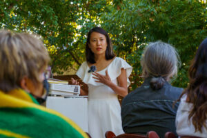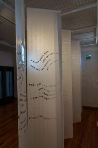 Shon created an installation that took inspiration from the nearby Boise River and books from Surel Mitchell’s collection, which all visiting artists have access to while they are here.