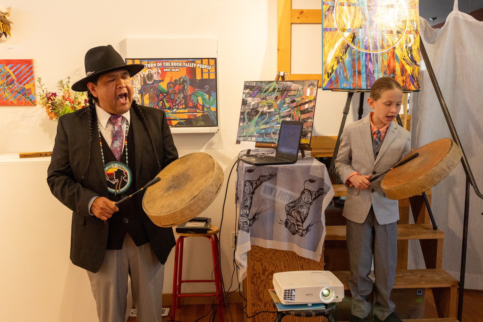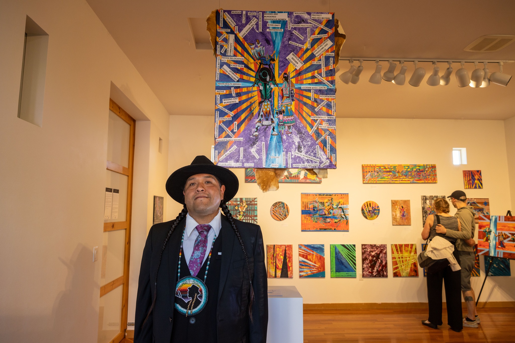 Kit Julianto, Yooti, is an enrolled member of the Shoshone Paiute Tribes of the Duck Valley Indian Reservation and a descendent of the Navajo nation. He teaches Art, grades Pre-K to 12th, at the Owyhee Combined Schools in Elko County School District. He believes in empowering youth to express themselves through different mediums such as painting, watercolor, pottery, drawing, and art foundations in school and through workshops. Other outlets of using his artistry and culture are by presenting Native American workshops on how to play the Native flute, singing, and hand drum making. His works reflect upon Native American culture, music, tradition, and storytelling, through various mediums, vibrant colors, and texture. His works of art have been shared throughout many Native and non Native communities, galleries, and gatherings.