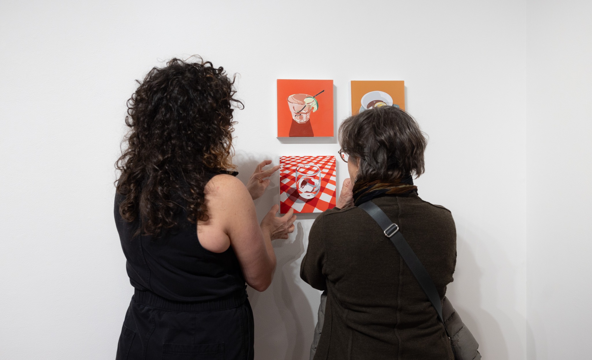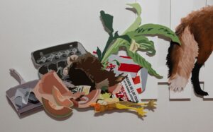 Lori Larusso (Kentucky) is an American visual artist exploring primarily our paradoxical relationships with foods and animals, in or near the home. Her body of work encompasses paintings and installations that explore issues of class, gender, and anthropocentrism, and how these practices both reflect and shape culture. She embraces color as a carrier of spatial properties, and image as conduit for complex narratives while still engaging us with humor and playfulness.