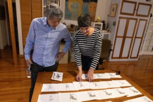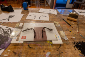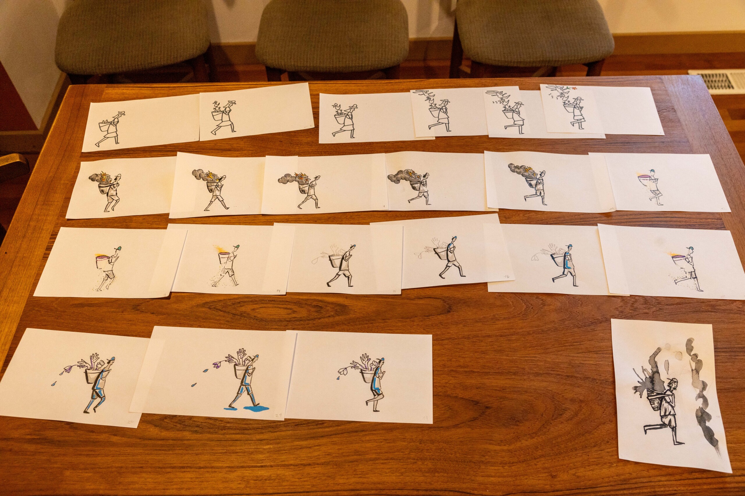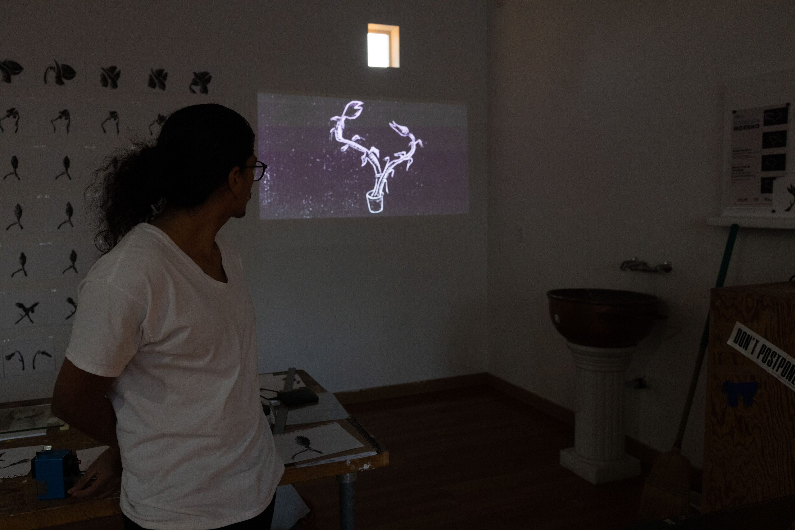 During his residency, Moreno produced scenes for his animation project Galaxia, which is his first animation short film. He explored and experimented with different media and techniques to achieve a fluid ink on paper visual and animation style.