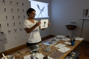 Moreno led the workshop “Weaving the Myth” where participants brought to life a character who carries a city in a bag full of memories. Starting with a line-art animation base, participant colored at least three frames, transforming the story with their personal touch. With the frames combined, they crafted a collaborative animated sequence.