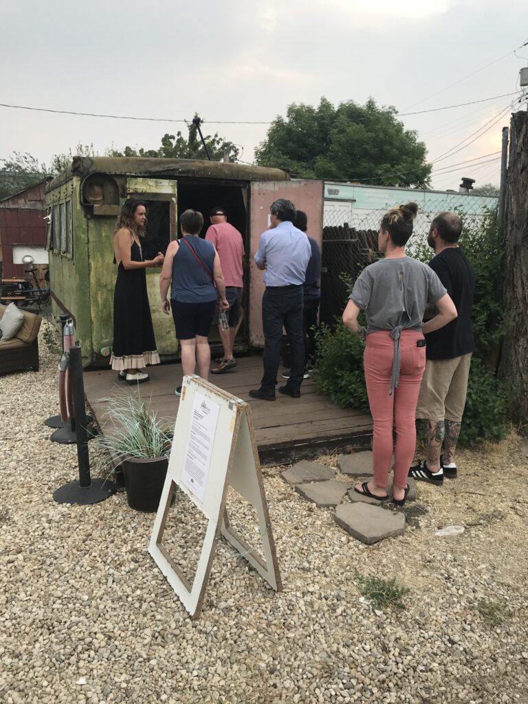 The GreenBox was found neglected in our neighborhood during redevelopment several years ago. After some research, the GreenBox was discovered to be a WWII era mobile military office. After its use by the U.S. military, it was discarded in Olympia, Washington. A Garden City resident – a long haul truck driver – adopted it and transported it on a trailer to a location behind her home to be used as a garden shed for many years. Instead of its life ending in demolition, the GreenBox was rediscovered and repurposed in February 2018 and granted a new life. The GreenBox lives on and now serves a much higher purpose, here in Garden City’s Live-Work-Create District, steps away from Surel’s Place around the corner on North Carr Street.