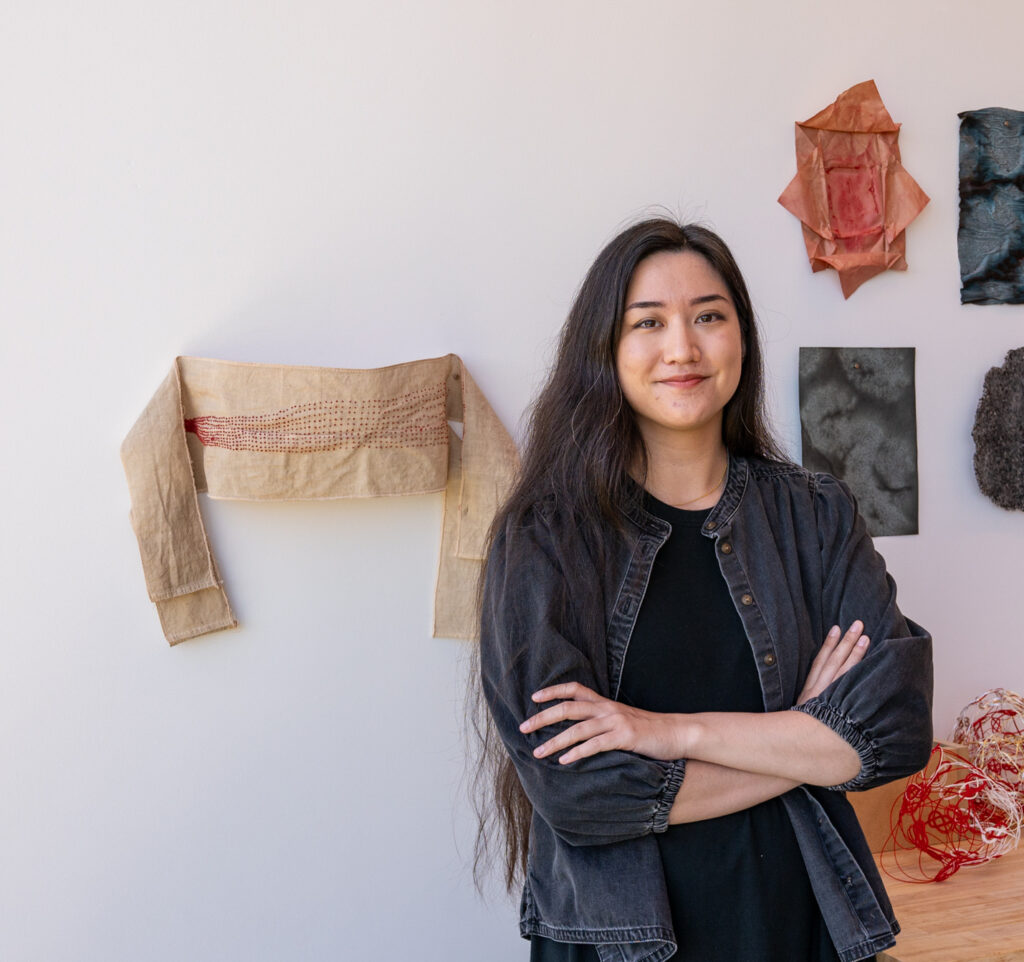 Hallie Maxwell is a Japanese American interdisciplinary artist based in Idaho. She works with installation, audio, video, drawing, and performance. Maxwell received her MFA in Visual Arts from Boise State University in 2024 and her BA in Art from California Lutheran University in 2019. Maxwell is a recipient of the International Sculpture Center’s 2023 Outstanding Student Achievement in Contemporary Sculpture Award. She has participated in Artist in Residence programs internationally and locally at Cove Park, Surel’s Place, the Common Well, and MING studios. Maxwell is a descendant of survivors of the atomic bombing of Hiroshima. Her work studies themes such as generational trauma, loss, and disconnection from cultural identity.